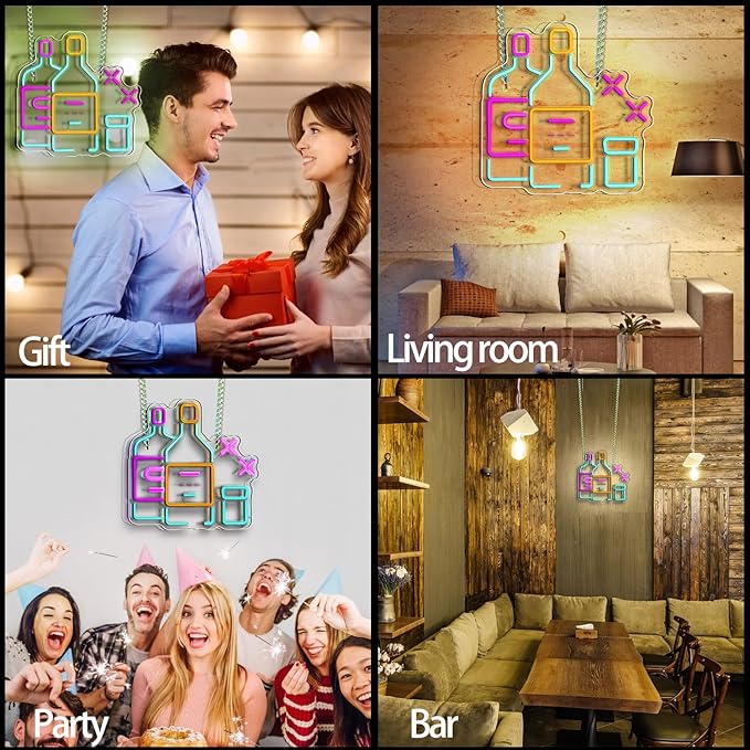 - Updated Beer Bar Design. The unique design of the beer sign create a cool vibe for bars, bistro, nightclubs, or party. Elevate your wall with our unique neon sign for man cave, bars, bistro, nightclubs, or party. Catching everyone's eyse with our updated neon light, bringing you an immersive experience! Quiet and safe, perfect for room decor or gift!