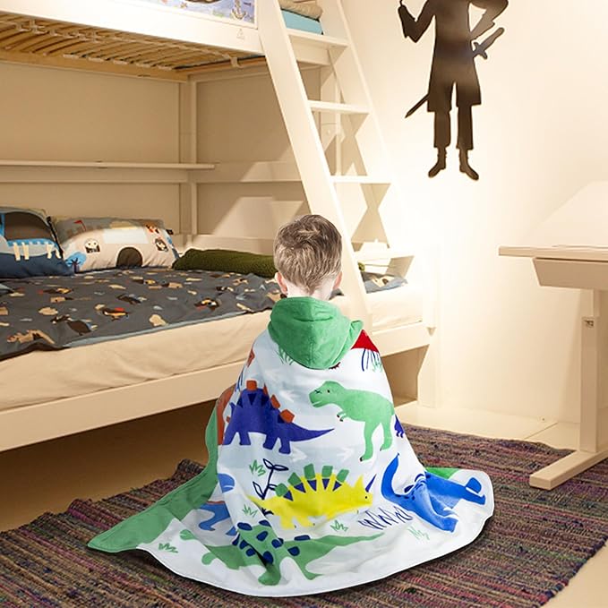 - ?Popular Prints?The prints of the hooded towel ponchos are popular with kids. It includes dinosaurs, sharks and space for boys, mermaids and unicorns for girls. The latest printing and dyeing technology makes the colors bright and colorfast.