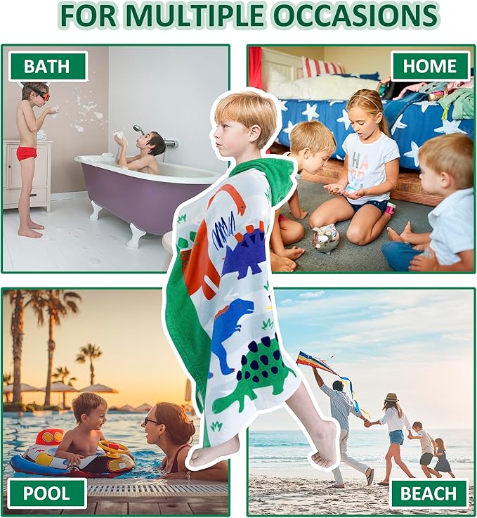 - ?Multi Uses?This hooded towel is a oversized Style. It allows children to move freely and flexibly without feeling constrained. It can be a hooded bath towel , beach towel and pool towel, as well as cover-ups after swimming at pool or beach.