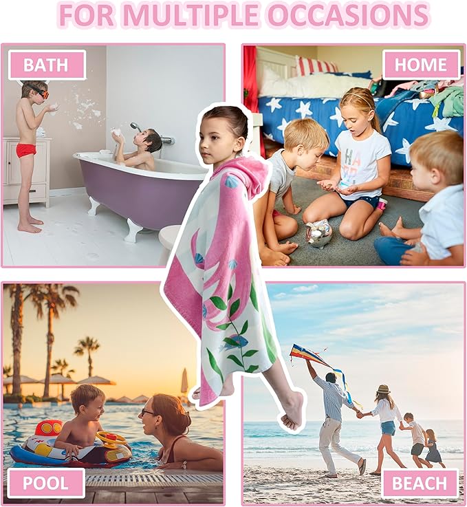- ?Multi Uses?This hooded towel is a oversized Style. It allows children to move freely and flexibly without feeling constrained. It can be a hooded bath towel , beach towel and pool towel, as well as cover-ups after swimming at pool or beach.