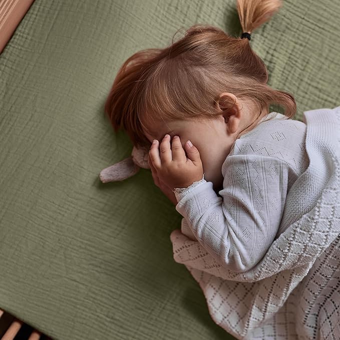 Denmark - Super Soft Muslin Mini Crib Sheets - 24'' x 38'' - 100% Organic Baby Crib Sheets for Boys and Girls - 2-Pack (Blush/Sage Green)