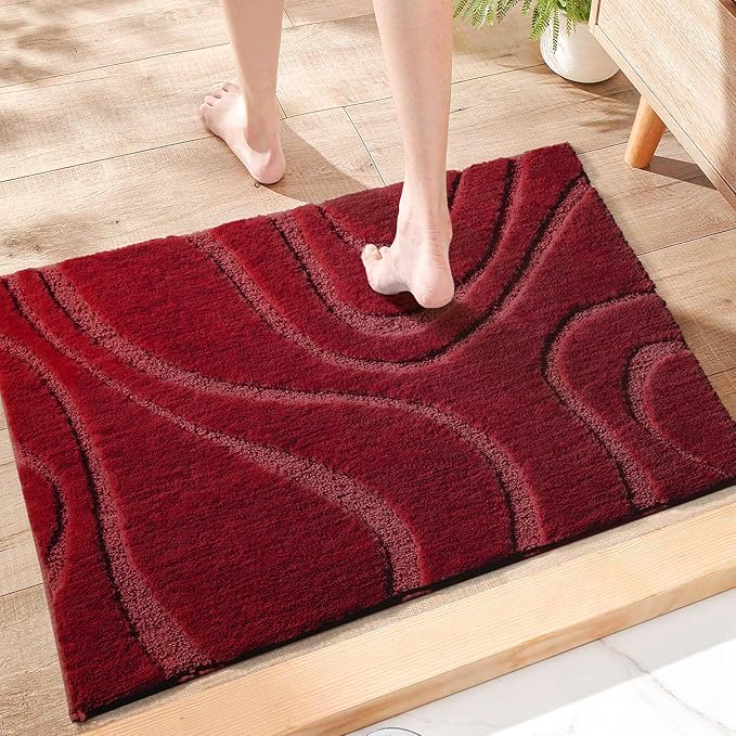 DEXDE Bathroom Rugs Mat,Soft Plush Shaggy Microfiber Bath Rug Non Slip Bath Mats for Bathroom Floor,Machine Washable Absorbent Carpet for Shower Tub,Burgundy Red 24"x36"