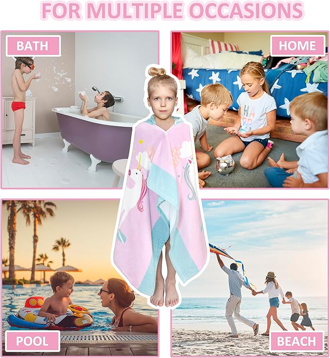 - ??â?ï¸ï¸?Multi Uses?This hooded towel is a oversized Style. It allows children to move freely and flexibly without feeling constrained. It can be a hooded bath towel , beach towel and pool towel, as well as cover-ups after swimming at pool or beach.