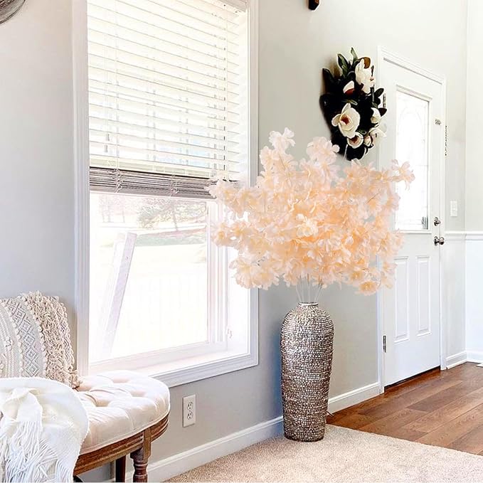 - EXTRAORDINARILY LUSH CHERRY BLOSSOM STEMS: The package contains a total of 440 cherry blossom petals clustered on 5 main stems, a sufficient number of petals to decorate your vase and make your tall vase look full enough, the flowers are bright and beautiful, adding a wonderful spring-like blooming feeling to your home