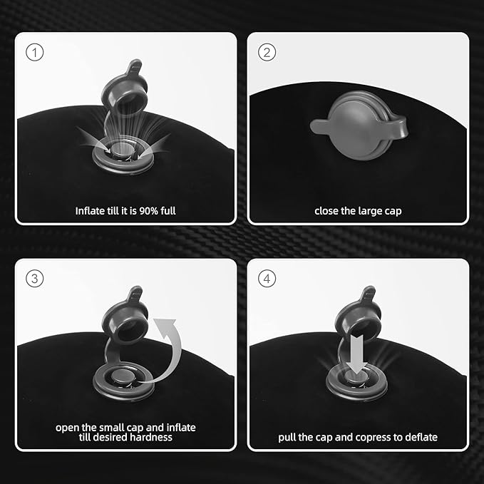 - ➤ Inflate and Deflate Quickly: Inflatable pillow is easy to inflate and deflate. Quick double safety air valve, this valve is designed to provide efficient and fast inflation and deflation for breathing, just press the valve to deflate.