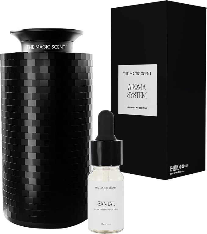 - SIMPLE SETUP, Covers up to 400 sq ft: Remove the top from the base, unscrew the fragrance bottle, fill it with scent, and reinsert the top. Hold the power button for 1.5 seconds to turn the system on/off. Press the power button to adjust the intensity level. Hold the H button for 3 seconds to switch between home and car mode; car mode activates when the green light next to the car icon appears.