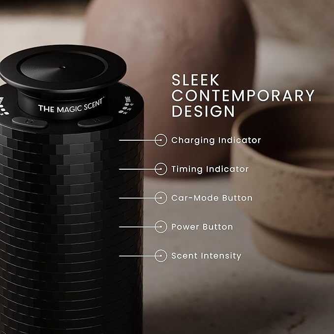 Mini USB Car Diffuser - Waterless Scent Machine for Home & On-The-Go - Intensity Control & Timer - Waterless Oil Diffuser - Rechargeable Car Air Freshener Diffuser up to 400 sq. ft.
