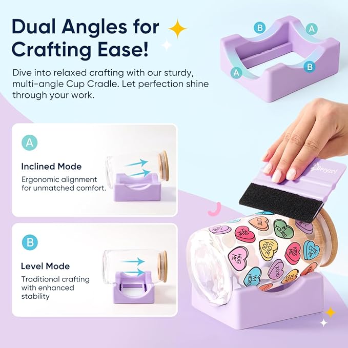- Special Design: Different from traditional cup cradle, this silicone one comes with 2 angle modes. Level mode and inclined mode, intimately create for makers with different habbit. Perfect position to place tumblers on during UVDTF cup wraps / Vinyl Decals application, meet all your decal needs!
