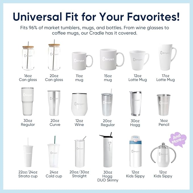 - Wide Application: Our cup cradle is suitable for most skinny straight tumblers, sublimation tumblers, coffee cups, ordinary glass cups, water bottoms, wine tumblers, enamel cups, mason jars, etc. It will be your perfect crafting tool.