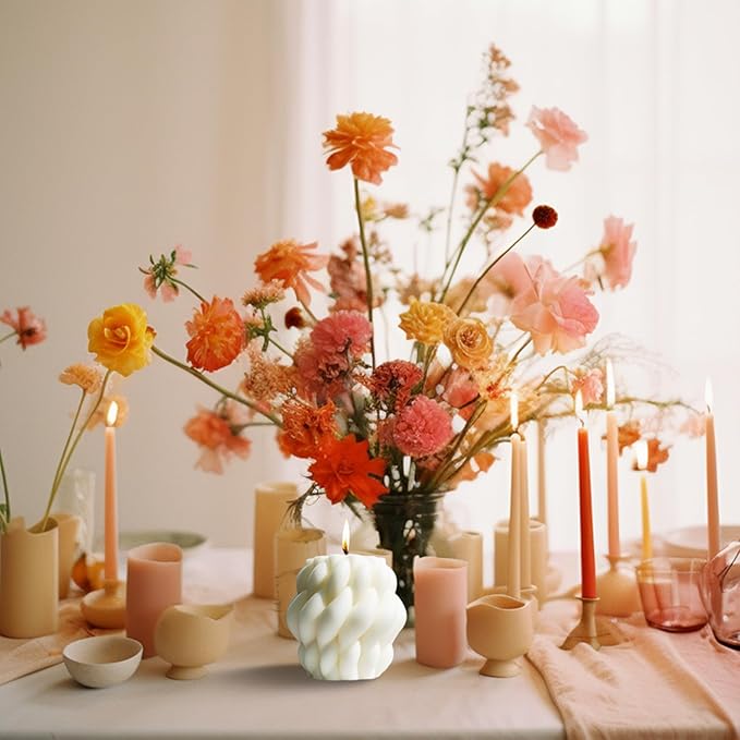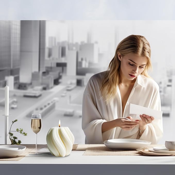 Swirl Ball Candle,Scented Soy Wax Spiral Candle,Home Office Danish Pastel Trendy Room Floating Shelves Decor Large Candles,White