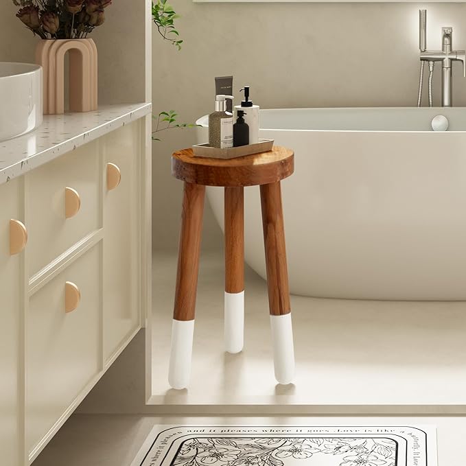 - A TIMELESS, CLASSIC, WOODEN STOOL: Handcrafted from raw wood, sealed to perfection, and legs dipped in white to add a fun dimension. Perch your houseplants on them, the kid's stack of books, or your hand towels in the bathroom, and let it be the finishing touch to any room in your humble abode.