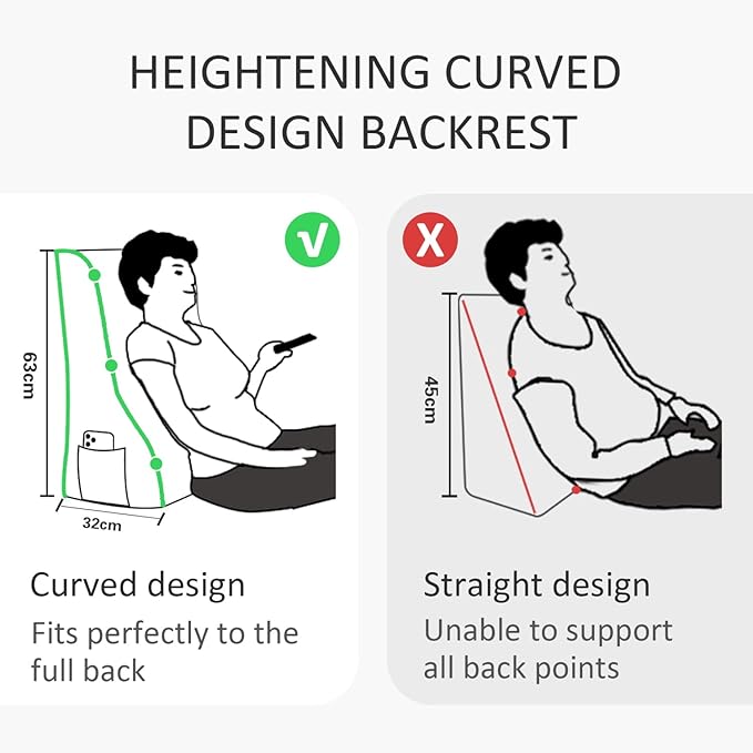 - Enhanced Support and Comfort: Our upgraded double-row heightened backrest design provides exceptional support for your upper body, ensuring total comfort and relaxation. Classic Arc Designed to fit the natural curve of the human back, both men and women can confidently enjoy its benefits. The Headboard Pillow supports the back and waist, allowing you to unwind completely. Its thickened bottom ensures stability, making it stand firmly on your bed.