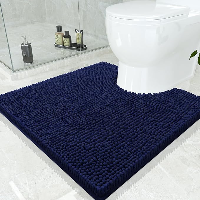 Smiry Luxury Chenille Toilet Rugs U-Shaped 24x24, Soft Absorbent Non-Slip Contour Bathroom Rugs for Toilet, Machine Washable Contoured Bath Mats, Navy Blue