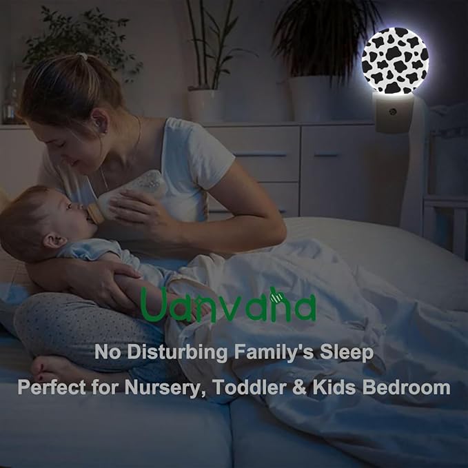 Cow Print Night Lights Plug into Wall Black White Dots Animal Skin Farmhouse Night Lamp Auto on/Off Dim Light Sleep Friendly for Family Friends Holiday Gifts & Home Decor