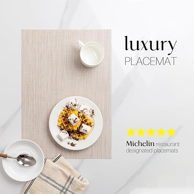 - PERFECT FOR INDOOR AND OUTDOOR:The wipeable placemat is two yarns over two, resulting in a quieter,less textural surface.The neutral color scheme and the classic size (about 12*17 inch)makes the whole table elegant and stylish full of texture!