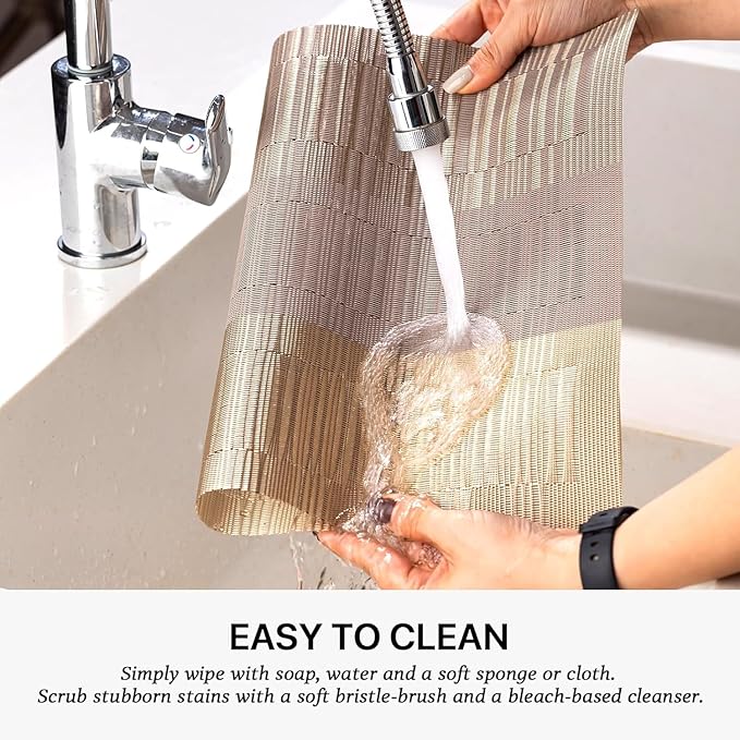 - EASY TO CLEAN:The washable placemats can be washed repeatedly.How to clean the place mats for kitchen table:Simply wipe with soap,water and a soft sponge or cloth.Scrub stubborn stains with a soft bristle-brush and a bleach-based cleanse.