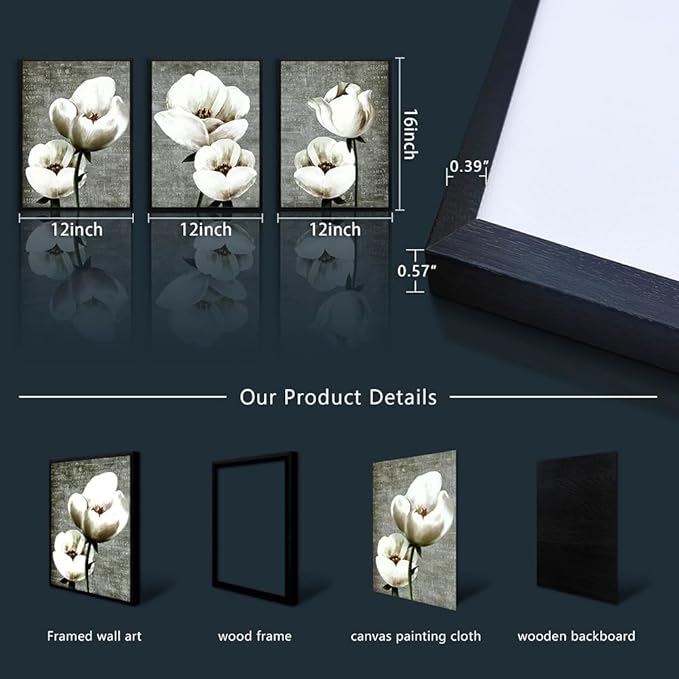 - 【FRAMED CANVAS WALL ART SIZE】Size Is :12x16inch (30x40cm)(Including The Outer Frame), total 3 Panels. Black Framed Wall Decor Art Wood Frame wall art.