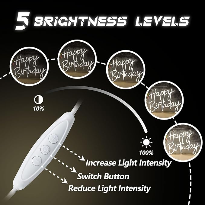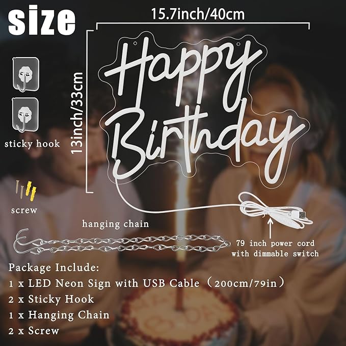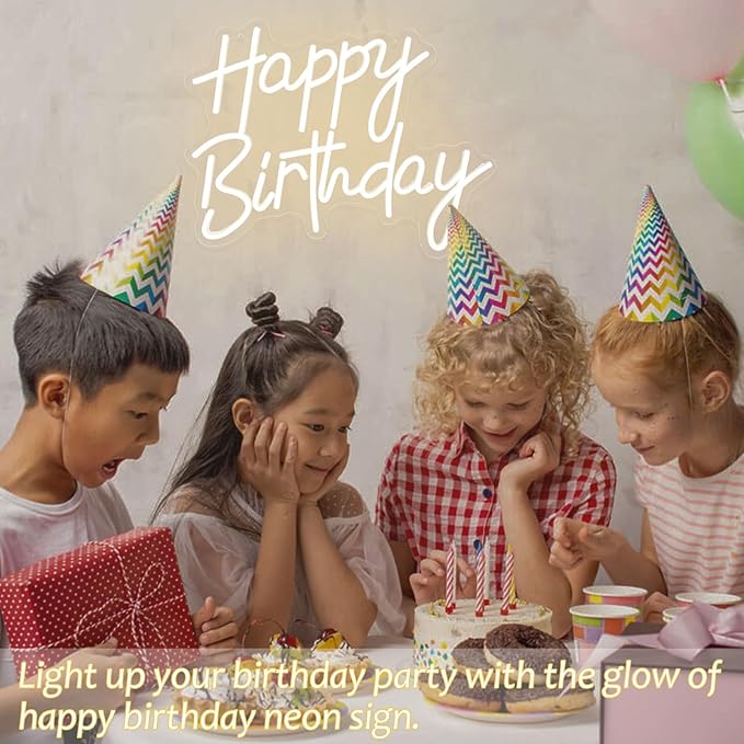 - 【Happy Birthday Neon Sign】Nothing says Happy Birthday like a warm white LED neon sign! Hang the Neon Happy Birthday sign up as a backdrop for birthday party decorations instead of a paper Happy Birthday banner. Add an ultra bright pop to get the party going. Our party decor are the perfect size to make a stylish statement in any room.
