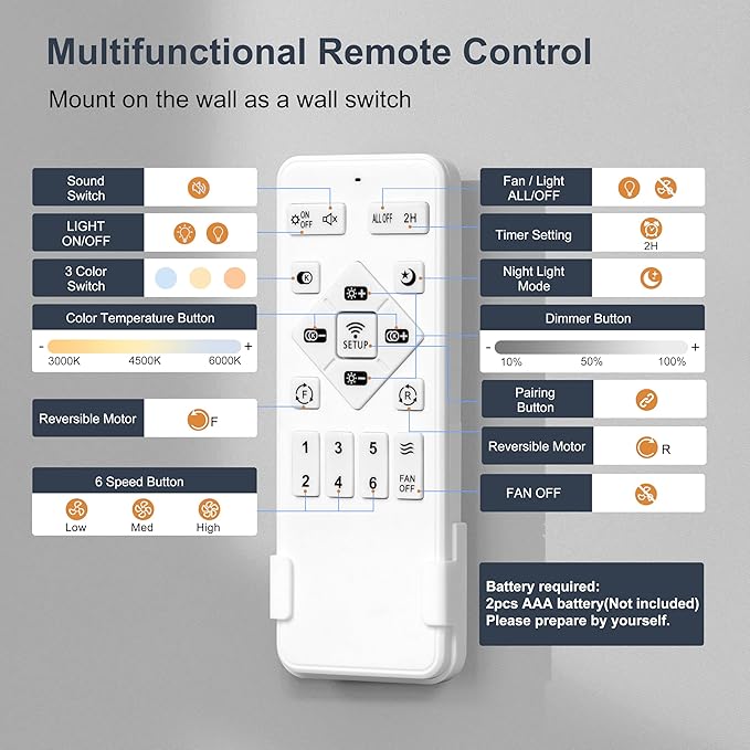 - Dimmable Light: Black modern ceiling fan with LED lights offers 3 CCT options. with adjustable brightness from 100% to 10%. Achieve personalized lighting and enhance room aesthetics. Note: Lighting memory doesn't work with wall switch