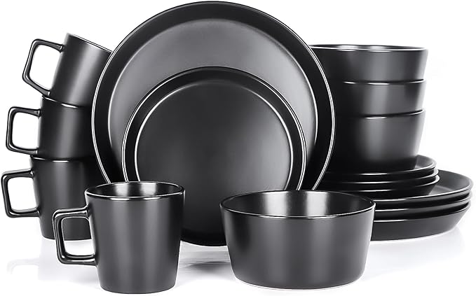 Plates and Bowls Sets, 16 Pieces Dinnerware Sets, Service For 4, Black