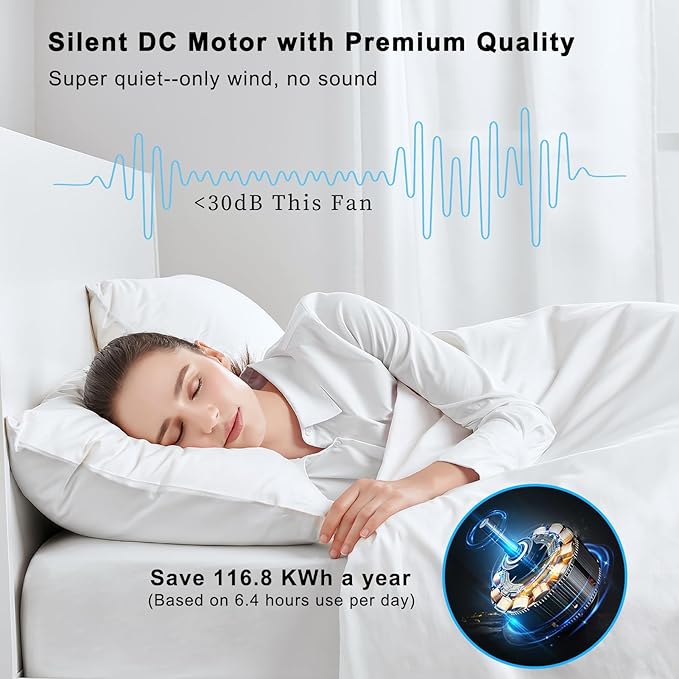 - Silent and Energy-Efficient DC Motor: Experience peaceful tranquility with the industrial ceiling fan's noiseless DC motor The noise level of the fan is less than 30 dB Enjoy top-notch performance while saving energy