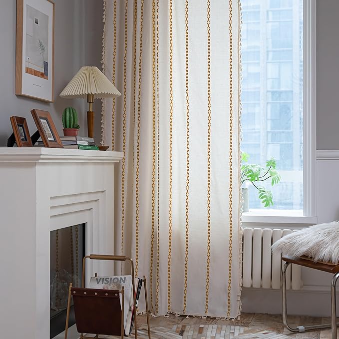 ColorBird Boho Curtains 2 Panels Striped 63 inch Bohemia Western Curtain for Living Room Bedroom