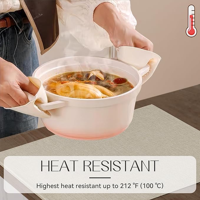 - THICKENED AND HEAT-RESISTANT: Our placemats feature a double-layered faux linen fabric which is heat-resistant up to 220°F (100°C) . They will prevent hot dishes, stains, and scratches from damaging your tables or furniture.