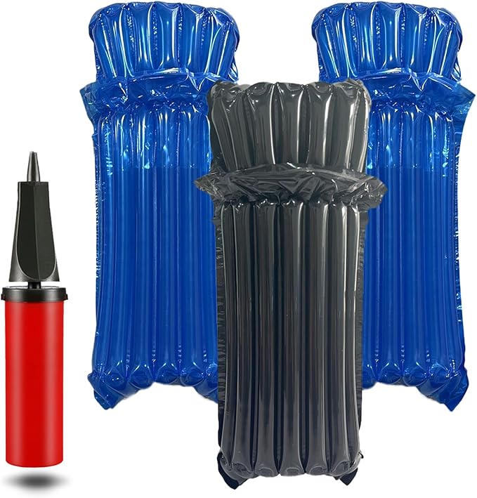 - Notice:After about 7-15 pumps it is totally inflated.The wine bottle bags allows air to be pumped in but it doesn't seep out.When inflating,if there are a few air columns do not expand,please do not worry,repeatedly knead the air inlet of this gas column with your hand, and then inflate,repeat this operation,you can make all the gas columns work normally.