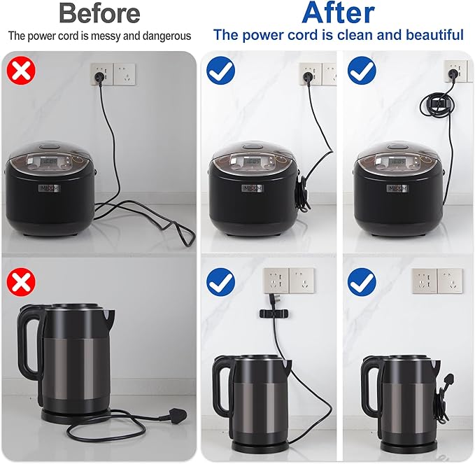 - PREMIUM MATERIAL: Each appliance cord organizer stick on is made of high quality rubber, durable and deformation resistant. The sticky adhesive pad is non-toxic, odorless, and will not leave marks on kitchen appliance surface