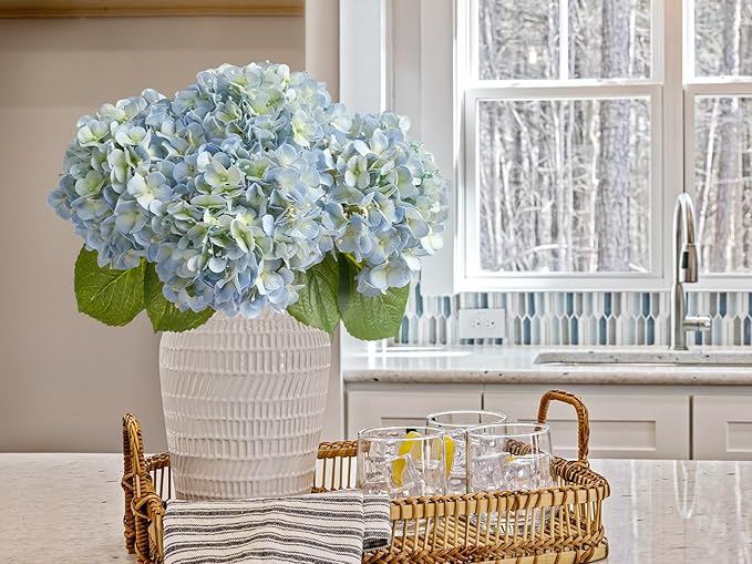 20" 4PCS Artificial Light Blue Hydrangea Flowers Large Faux Latex Real Touch Fake Hydrangeas Silk Bouquet with Leaves Stems for Family Table Office Wedding Party Arrangements