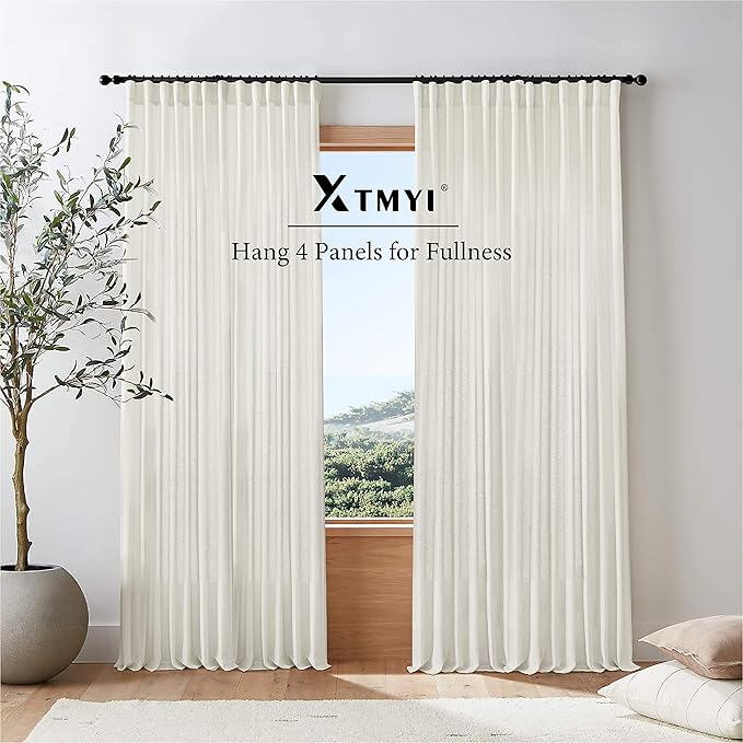 Extra Wide Curtains 70 In Width for 72 Inch Window,Pleated Back Tab Linen Semi Sheer Full Length Curtains for Living Room Sliding Glass Door 2 Panel Set,72x102,70x102,6FT x 102 Inches Long,Cream