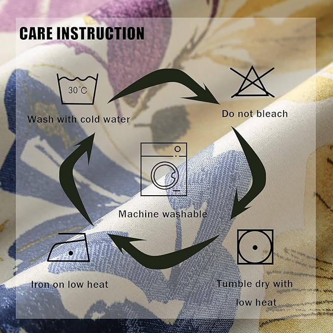 - EASY CARE: This vivid window panel drape is easy for cleaning, machine washable to allow for quick and effortless home care, use only non-chlorine bleach when needed. Tumble dry low and warm iron as needed.