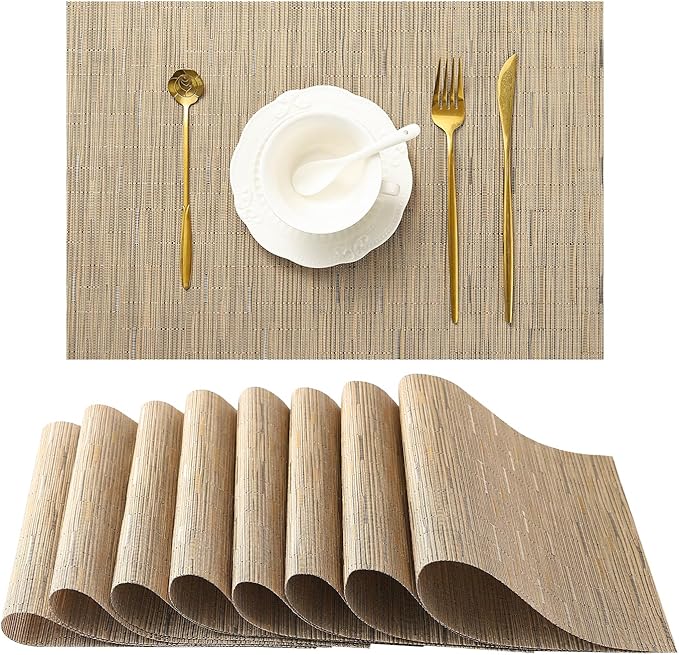 Leetaltree Light Brown Placemats Set of 8 - Heat Resistant Non-Slip Place mats for Dining Table, Washable Durable PVC Vinyl Woven Table Mats(Light Brown, 8)