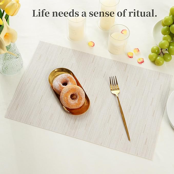 Leetaltree Pale Beige Placemats Set of 4 - Heat Resistant Non-Slip Place mats for Dining Table, Washable Durable PVC Vinyl Woven Table Mats(Pale Beige, 4)