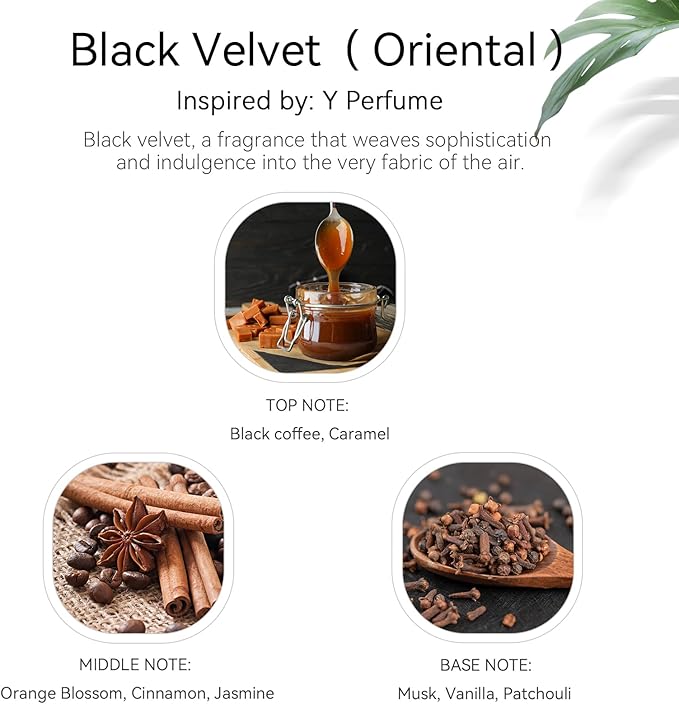 - Black velvet, a fragrance that weaves sophistication and indulgence into the very fabric of the air.