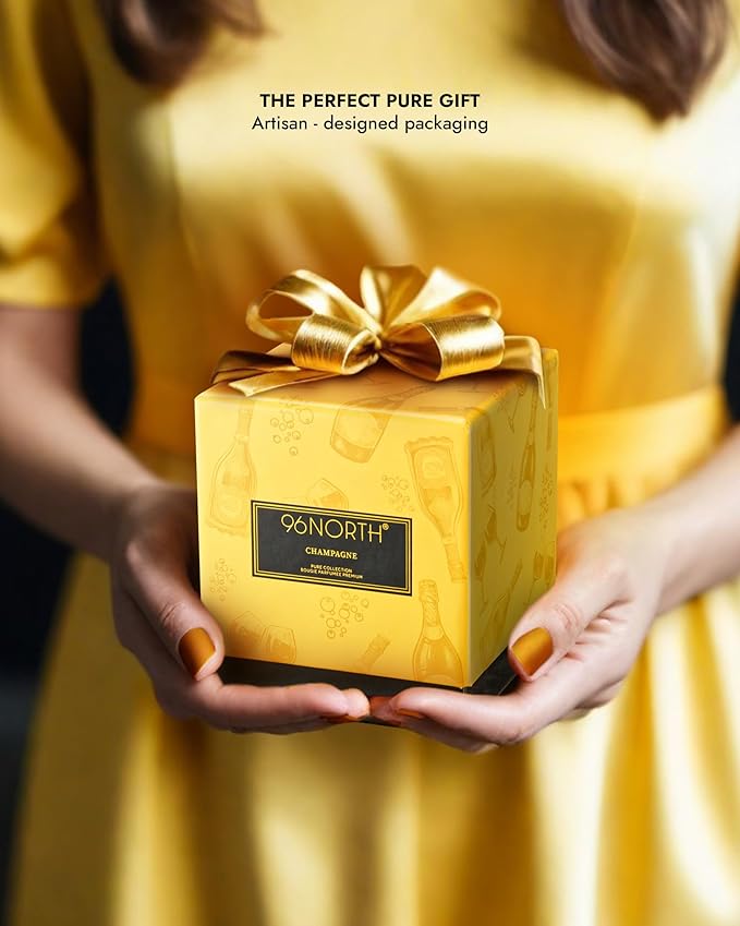 96NORTH | Pure Champagne Candle | 100% Natural Soy Wax | One Wick Jar Candle | Natural Fragrance Technology | Non Toxic | Up to 35 Hours Burning Time | Aromatherapy Gift for Men and Women