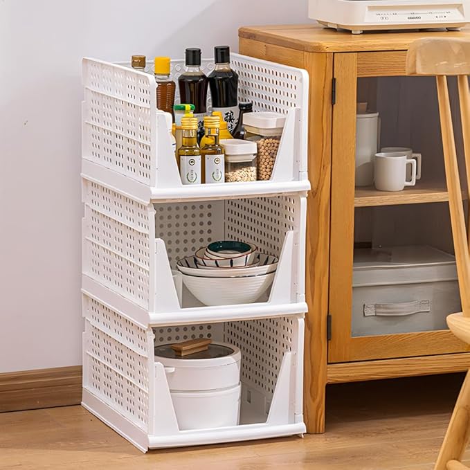 - Ideal Choice Storage Bins for Clothes ---XL Plastic storage bins with drawers has multiple uses, you can put the plastic storage basket in the closet to store clothes, blankets, bags and shoes, etc, You can also place the drawer shelf storage container in the kitchen to store pots, pans, bowls, spices, vegetables, groceries and other items, beside it's an ideal choice to put in your bathroom, living room, study room and office to manage your space.