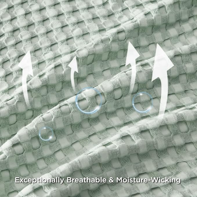 Bedsure Cooling Cotton Waffle Oversized King Blanket - Lightweight Breathable Blankets Rayon Derived from Bamboo for Hot Sleepers, Luxury Throws for Bed and Sofa, Sage Green, 120x96 Inches