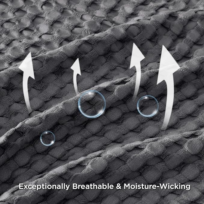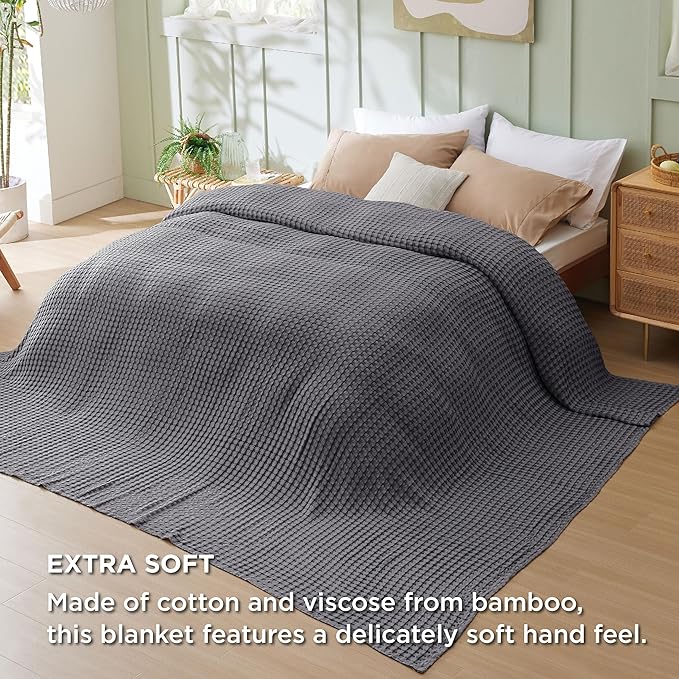 Bedsure Cooling Cotton Waffle Oversized King Blanket - Lightweight Breathable Blankets Rayon Derived from Bamboo for Hot Sleepers, Luxury Throws for Bed and Sofa Dark Grey, 120x96 Inches