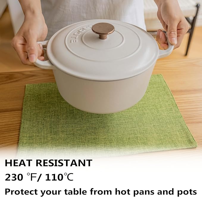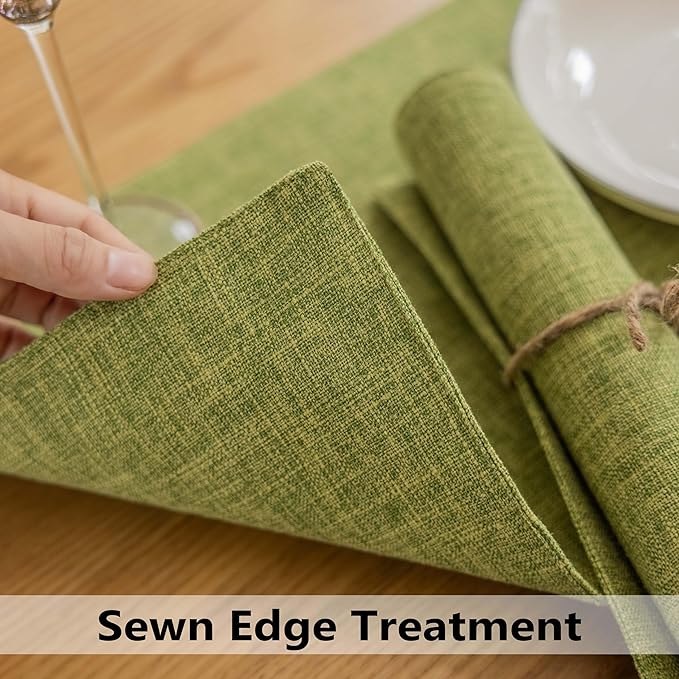 Demetex Sage Green Placemats Set of 4 Linen Textured Table Place Mats Heat Resistant Fabric Plate Mats for Party Holiday Dining Kitchen, Lime Green