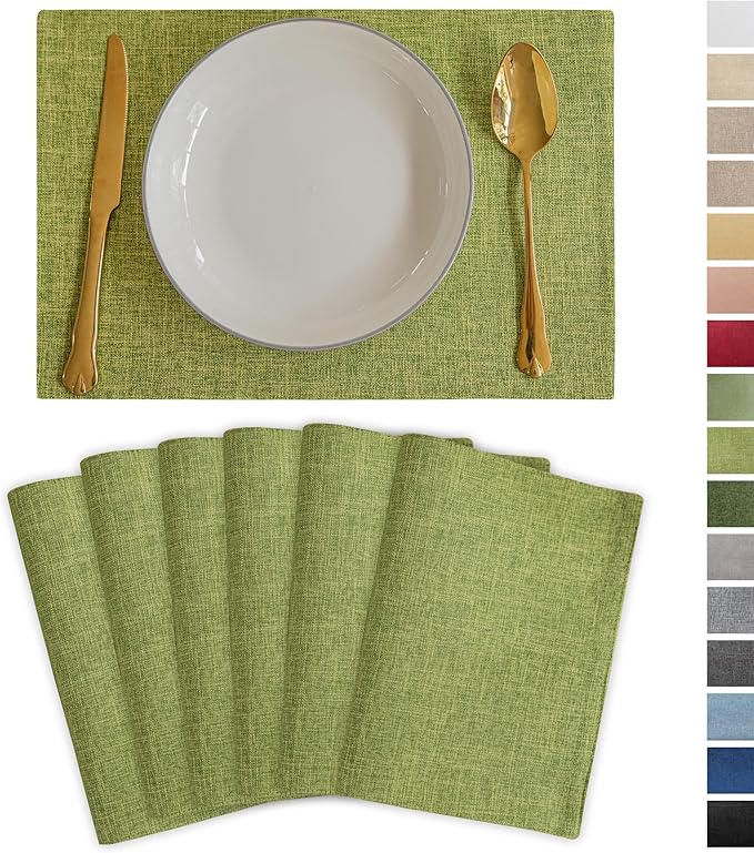 Demetex Placemats Set of 6 Green Decorative Table Mats Modern Linen Placemats Washable Heat Resistant Plate Mats for Dinner Gathering Kitchen, Lime Green