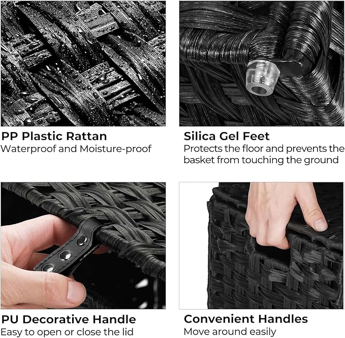 - Handwoven Craftsmanship - Greenstell laundry hampers are made of durable synthetic rattan materials that are waterproof. The laundry basket is made by professional craftsman, and each piece is unique, so there are subtle differences. Waterproof, adjustable foot pads are added to prevent the clothes from touching the floor. Bright natural veneers and delicate weaving work well with any style of furniture design, lightweight, durable, and can be used in your bedroom bathroom