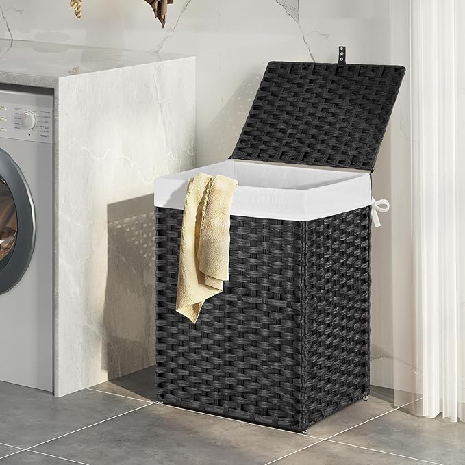 - Wide Inner Space - The thickened wire frame on the laundry basket improves load bearing capacity and leaves more space inside. Added PU decorative handles, make it easy to open the hamper lid to put the dirty clothes into the basket, keeping your room tidy and clean
