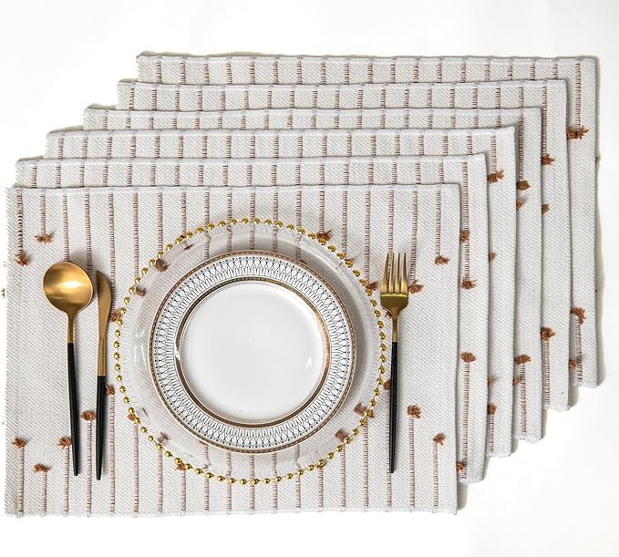 - 【Material and Packaging】Included 6 pieces of placemats, Size :13" x 19", All placemats are cut and sewn by hand and made from cotton natural materials, including soft, skin-friendly cotton and tassels.