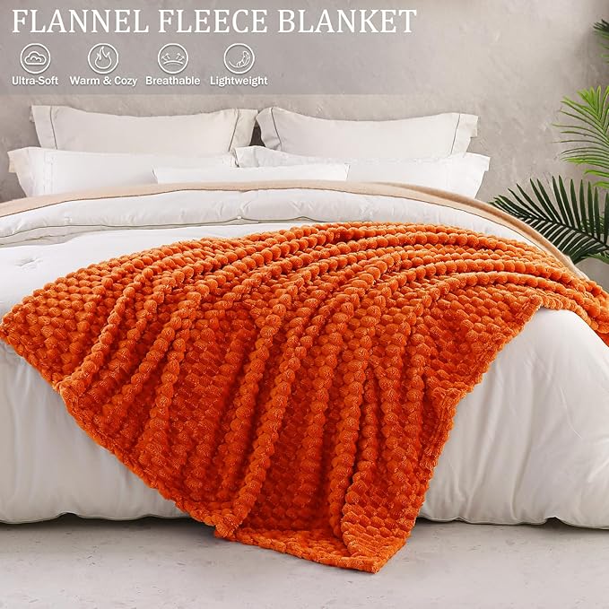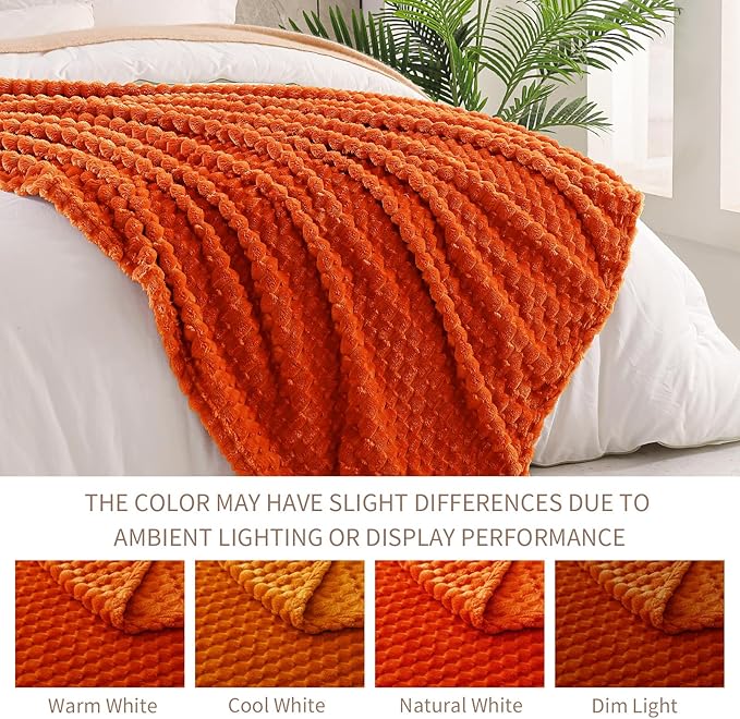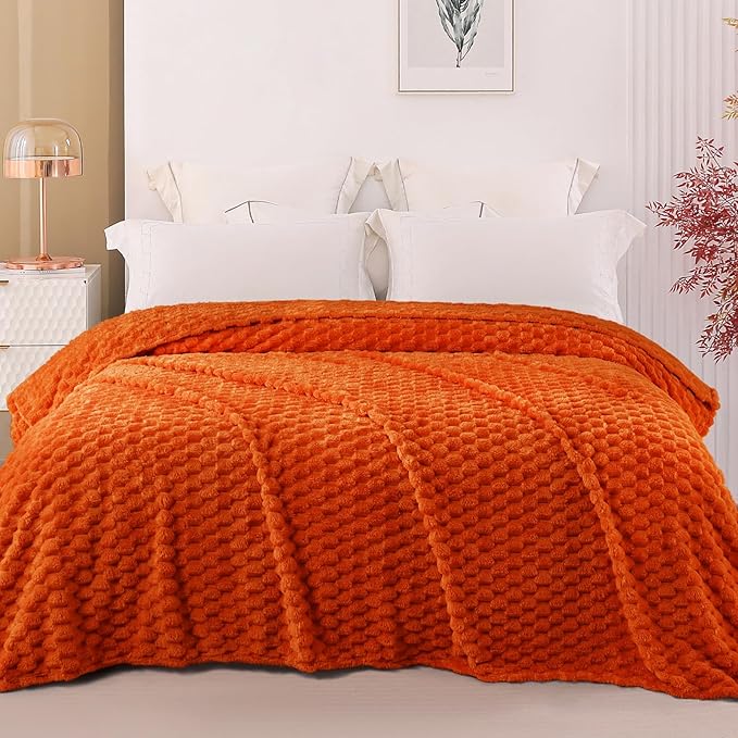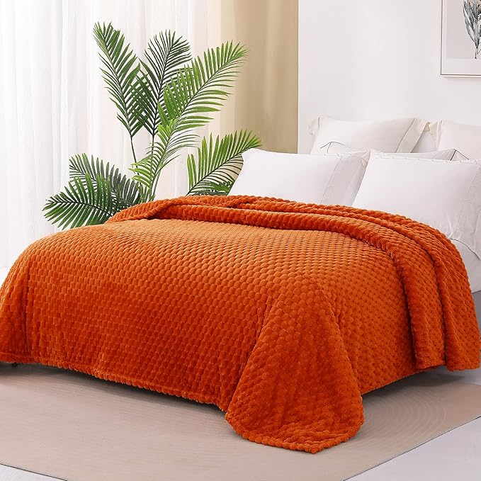 Exclusivo Mezcla Twin Size Soft Fleece Blanket, 60x80 Inches Stylish Jacquard Velvet Blanket for Bed, Fuzzy Cozy Lightweight for All Season, Burnt Orange