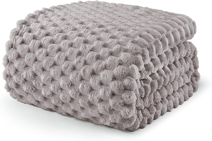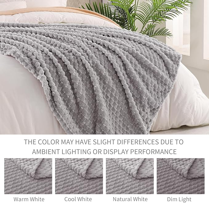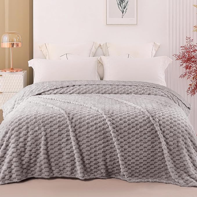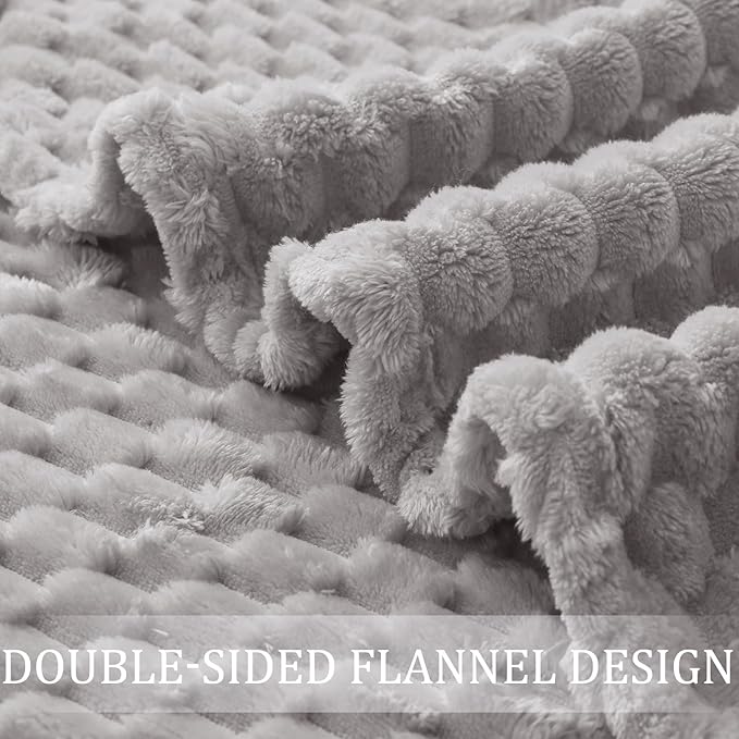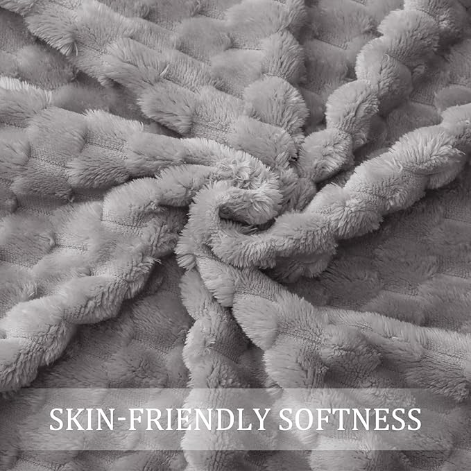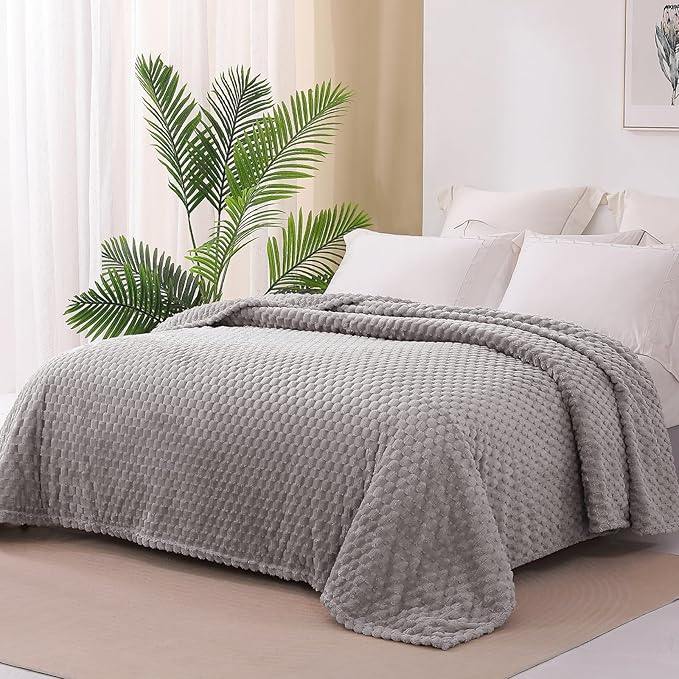 Exclusivo Mezcla Twin Size Soft Fleece Blanket, 90x66 Inches Stylish Jacquard Velvet Blanket for Bed, Fuzzy Cozy Lightweight for All Season, Light Grey