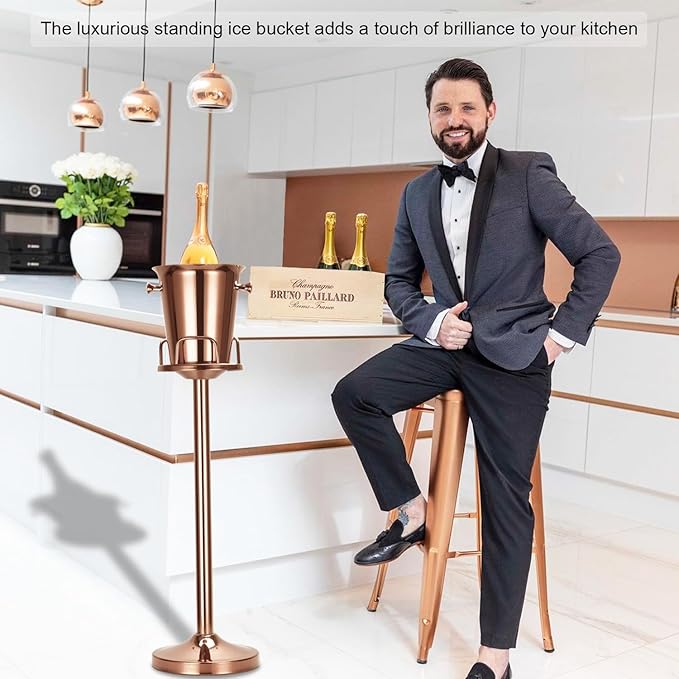 Champagne Bucket with Stand,Ice Bucket with Stand Stainless Steel Bucket Wine Chiller On Stand 12Lb Hammered Tall Ice Bucket Stand for Party Bar Ktv Bbq Home,3ft (rose gold, 2 packs)