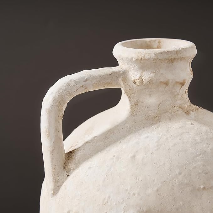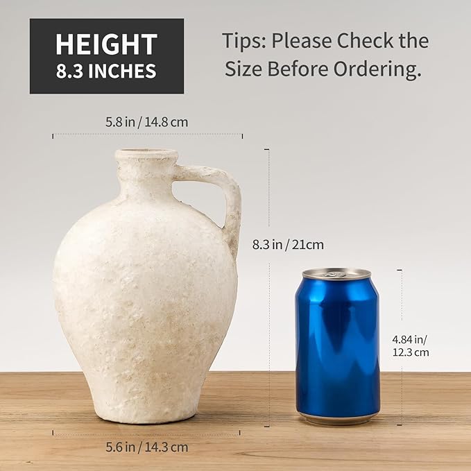 LUKA Ceramic Rustic Farmhouse Vase,8.25 inch Terracotta Vase with Handle,Neutral Clay Pot Vases Decorative Vase for Living Room,Table,Shelf Decor(Off-White,M)