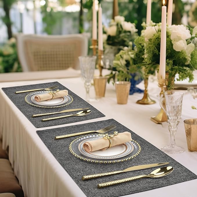 Dark Gray Cloth Placemats Set of 8 - Easy to Clean Fabric Table Placemats - Machine Washable Placemats- Heat Resistant Non-Slip Table Mats (Dark Gray, 8)
