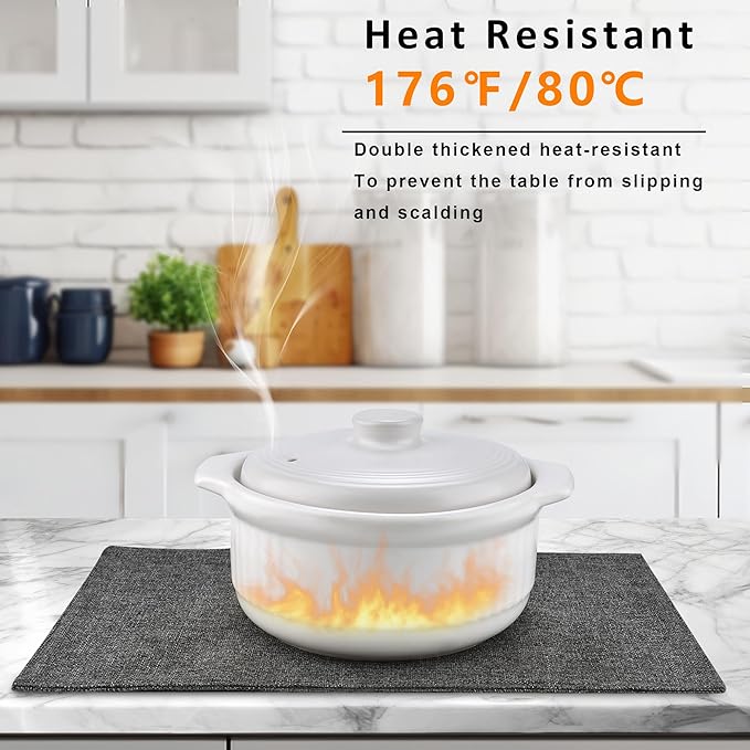 - Heat Resistant - These placemats can be used at a temperature of 100 degrees. They can prevent the table from slipping and scalding. To put on top of a dining table, a sewing machine, a chest of drawers, and a dresser the placemats look really nice on top of them